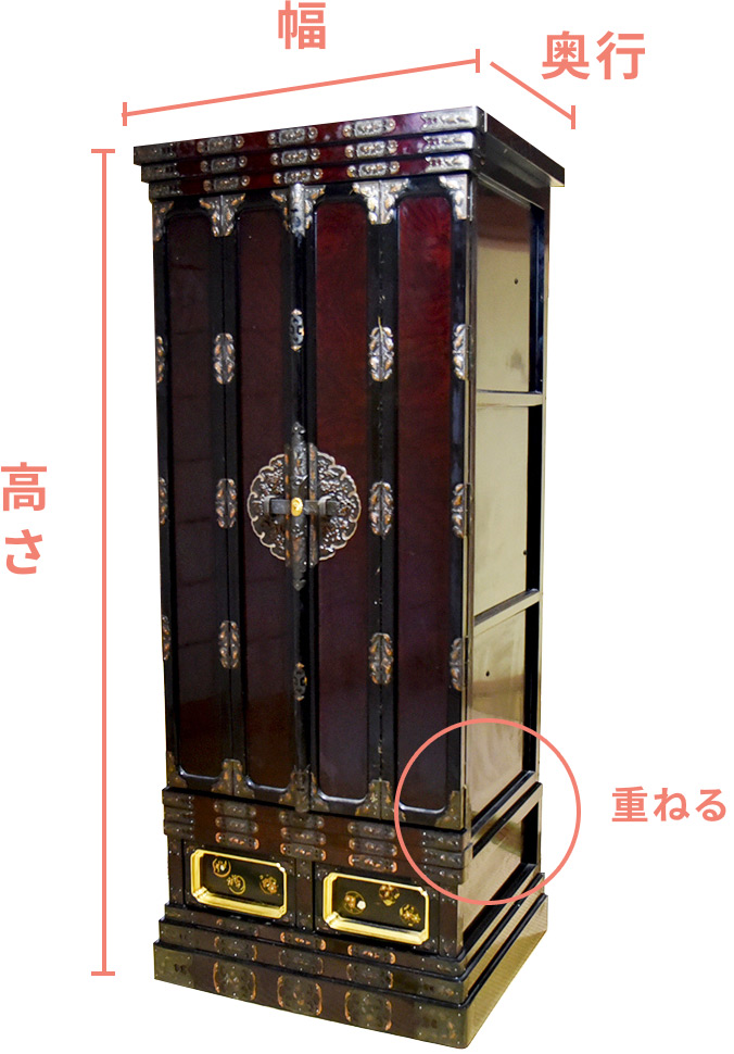 ※仏壇のサイズを測る時には、重ねた状態でお願いします。(重ねた状態参照)